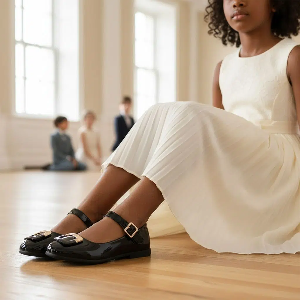 Leur bride réglable à scratch sur le dessus du pied offre un maintien parfait, tout en permettant à votre fille d’enfiler et de retirer ses chaussures en toute autonomie. Ce système pratique fait de ces ballerines école fille scratch un choix privilégié pour les journées scolaires, tout en restant suffisamment chic pour les événements plus habillés. Par ailleurs, la boucle dorée décorative ajoute du caractère sans jamais compromettre l’élégance du modèle.