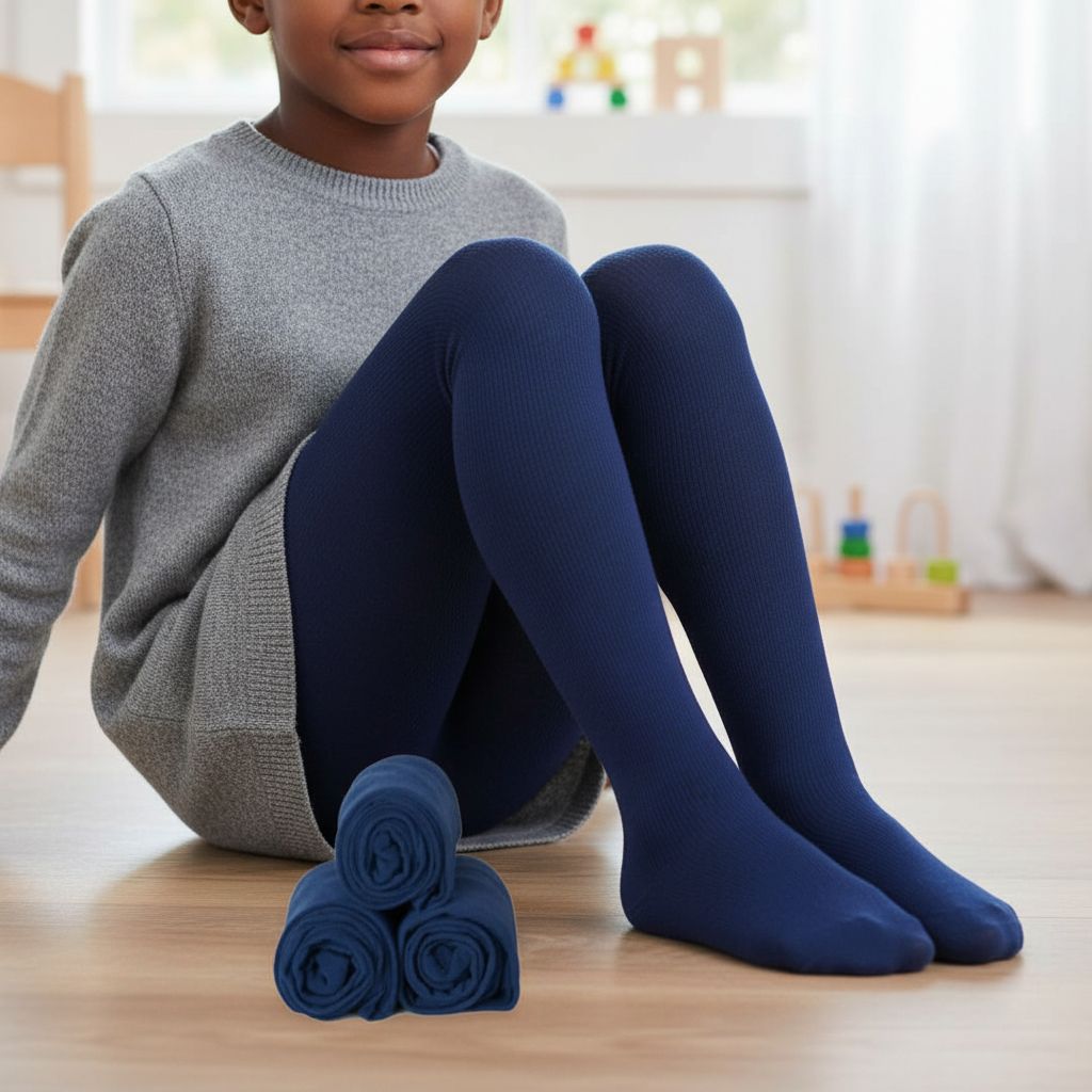 Chaussettes bleu marine enfant confortables, extensibles et opaques, idéales pour filles et garçons de 1 à 9 ans. Lot pratique pour l’automne hiver. ❀ Tailles disponibles : 1 à 9 ans, adaptées aux filles et garçons ❀ Couleur : bleu marine uniforme, élégante et facile à assortir ❀ Matière douce et légère pour un confort optimal au quotidien