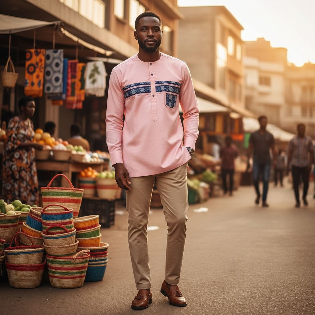 Découvrez la chemise homme rose orange, une pièce unique qui allie élégance, confort et originalité. Conçue pour les hommes à la recherche d’un vêtement à la fois moderne et imprégné de tradition, cette chemise XL à manches longues séduit par son mélange subtil de couleurs douces et de motifs authentiques. Le rose pastel domine la tenue, rehaussé par une bande décorative bleu marine ornée de motifs pagne tissé, conférant à cette chemise toute sa personnalité et sa sophistication. Grâce à sa coupe droite et ample, cette chemise ample confortable homme offre une grande liberté de mouvement et s’adapte parfaitement aux morphologies généreuses. Sa matière en coton léger et respirant garantit un confort optimal au quotidien, tout en assurant douceur et durabilité pour un usage régulier. Le col rond tunisien, agrémenté de deux boutons bleu marine, apporte une touche d’élégance décontractée, tandis que les poignets à double bouton permettent un ajustement sur-mesure selon vos envies. Polyvalente et facile à porter, cette chemise homme rose orange s’adapte aussi bien aux occasions décontractées qu’aux événements semi-formels. Que vous la portiez pour une sortie en journée, une soirée entre amis ou lors d’événements culturels, elle affirme votre style tout en subtilité. Son design épuré, rehaussé de détails ethniques, fait de cette chemise pagne tissé homme un choix idéal pour ceux qui souhaitent allier tradition et modernité dans leur garde-robe. La chemise grande taille homme est également pensée pour votre bien-être : son tissu naturel prend soin de votre peau et sa coupe ample vous assure une aisance incomparable tout au long de la journée. Laissez-vous séduire par cette chemise col rond homme, symbole d’un vêtement homme traditionnel moderne, et affirmez votre personnalité avec distinction. N’attendez plus pour adopter cette chemise manches longues homme élégante et révéler le meilleur de votre style au quotidien. Offrez-vous le confort, l’originalité et l’élégance qu’apporte cette chemise ethnique homme, et laissez-vous inspirer par un vêtement unique, pensé pour vous.