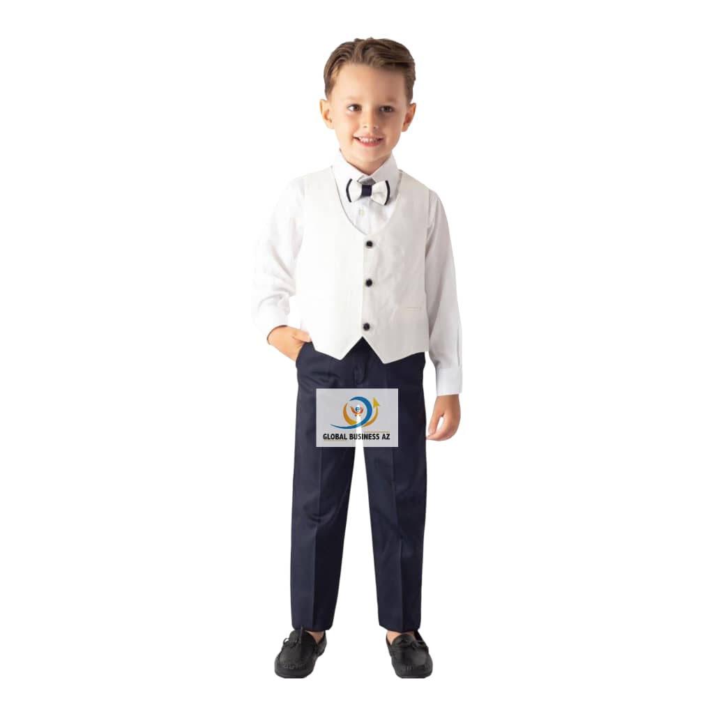 Ensemble 4 pièces de vêtements garçon avec pantalon , gilet blanc+ chemise blanche et nœud papillon(1 à 4 ans)
