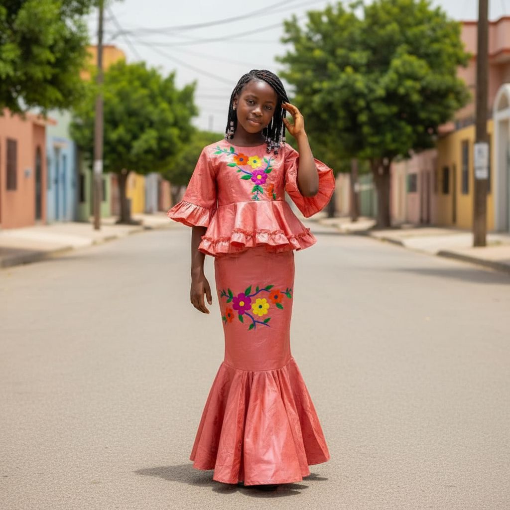 Découvrez l’ensemble cérémonie fille 9 ans qui sublimera toutes les occasions spéciales : une tenue chic et élégante composée d’une jupe longue et d’un haut floral raffiné dans une magnifique teinte orange foncé. Idéale pour les mariages, baptêmes, fêtes de famille ou cérémonies scolaires, cette tenue est pensée pour les jeunes filles qui souhaitent se distinguer avec style et originalité. Le haut est orné de délicates broderies florales multicolores, associant harmonieusement des touches de jaune, violet et vert, qui viennent contraster avec l’orange foncé éclatant du tissu. Les manches évasées et volantées apportent une note sophistiquée tout en offrant un confort optimal à votre fillette. La matière satinée, douce et légèrement brillante, garantit un toucher agréable et un rendu visuel luxueux, parfait pour les moments importants. La jupe longue, ajustée à la taille, se termine par un large volant qui donne du mouvement et une allure gracieuse à l’ensemble. Ce vêtement traditionnel fille événement allie l’élégance d’un habit de cérémonie à la praticité d’un ensemble deux pièces facile à enfiler. Le design original et les finitions soignées font de ce costume fille occasion spéciale un choix incontournable pour sublimer votre enfant lors des grands événements. En choisissant cet ensemble jupe et haut floral fille, vous optez pour un vêtement unique qui allie modernité et traditions. Sa couleur orange foncé, vibrante et chaleureuse, mettra en valeur le teint de votre fille tout en lui donnant une allure festive et chic. Que ce soit pour une robe cérémonie enfant orange, un vêtement floral enfant mariage ou une tenue élégante fillette 9 ans, ce modèle saura répondre à toutes vos exigences. Offrez à votre enfant une expérience inoubliable et laissez-la rayonner lors de toutes ses occasions spéciales avec cet ensemble cérémonie fille 9 ans exceptionnel. N’attendez plus pour ajouter ce vêtement exclusif à sa garde-robe et faire de chaque événement un moment mémorable.