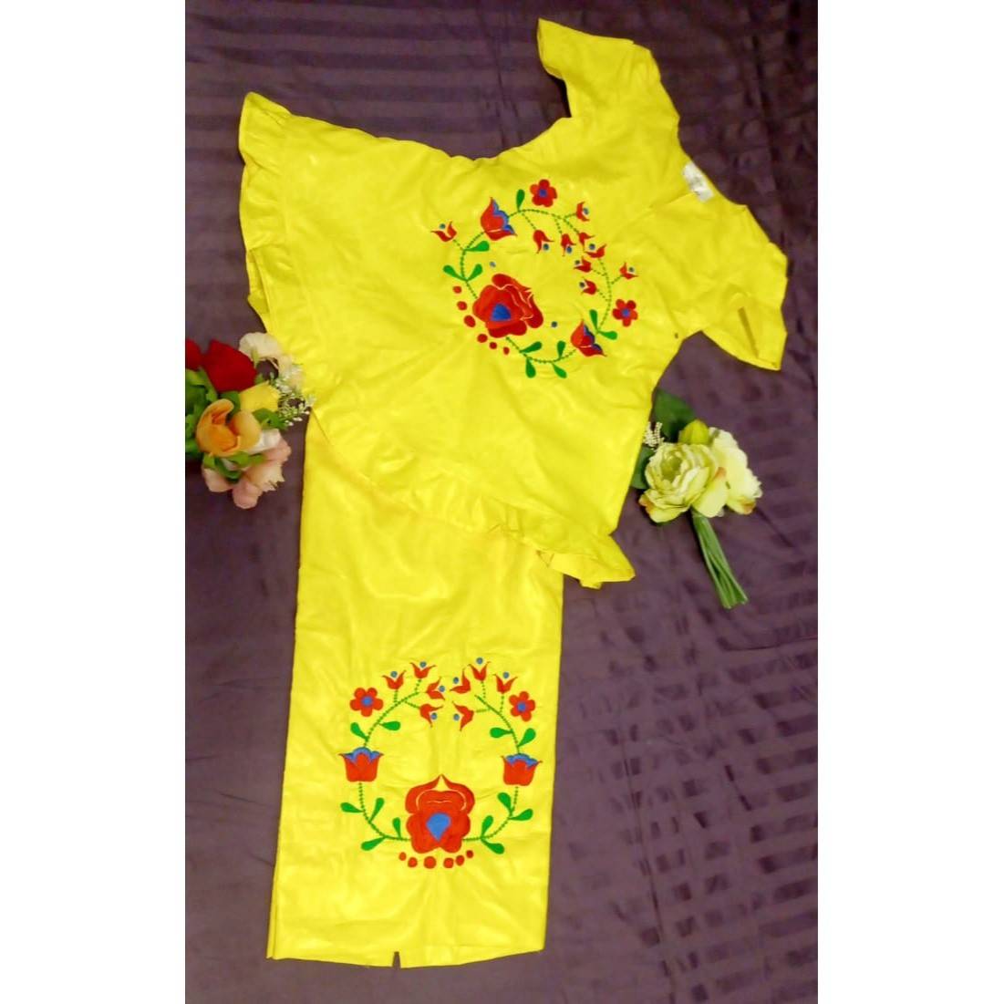 Ensemble cérémonie fille jaune 7 ans chic avec jupe et haut floral brodé, idéal pour événement habillé, confortable et élégant, couleur jaune poussin. ❀ Taille : 7 ans, ensemble composé d’une jupe et d’un haut chic ❀ Couleur : Jaune poussin avec broderies florales multicolores ❀ Matière : Tissu doux et léger, agréable à porter pour enfant
