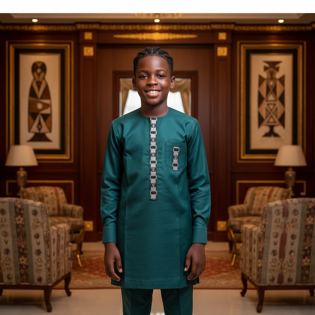 Offrez à votre enfant une allure élégante et authentique avec cet ensemble costume africain garçon, spécialement conçu pour les grandes occasions. Inspirée des tenues traditionnelles sénégalaises, cette tenue cérémonie garçon sénégal associe le charme du vêtement traditionnel africain enfant à la modernité d’un costume garçon coton vert. Sa couleur vert foncé profonde apporte une touche d’originalité et de distinction, idéale pour les cérémonies, fêtes, mariages ou célébrations familiales. Confectionné en coton de haute qualité, cet ensemble enfant cérémonie coton garantit un confort optimal tout au long de la journée. La matière douce et respirante respecte la peau délicate des enfants, permettant une grande liberté de mouvement, que ce soit pour jouer ou participer à un événement formel. La coupe élégante et les finitions raffinées témoignent du soin apporté à chaque détail, faisant de ce costume garçon coton vert un habit garçon africain vert foncé à la fois chic et pratique. L’ensemble comprend une tunique longue avec des broderies discrètes qui rappellent l’artisanat africain, ainsi qu’un pantalon assorti pour un look harmonieux et sophistiqué. Cette tenue élégante garçon africain s’adapte à tous les styles et met en valeur la personnalité de votre enfant lors des moments importants. Parfait pour un mariage, une fête religieuse ou une cérémonie traditionnelle, ce costume enfant sénégalais apporte une note de raffinement et de culture à la garde-robe des petits garçons. En choisissant cet ensemble habillé garçon ethnique, vous misez sur l’authenticité et la qualité, tout en offrant à votre enfant une tenue unique qui fera sensation lors de toutes les occasions spéciales. Ne manquez pas l’opportunité de lui offrir un vêtement qui célèbre ses origines et son élégance naturelle. Ajoutez dès maintenant cet ensemble costume africain garçon à votre panier et faites de chaque événement un moment inoubliable.