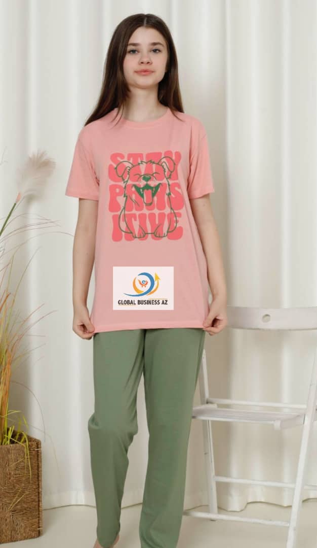 Ensemble pyjama 2 pièces en coton pour enfant, manches courtes, pantalons, vêtements de détente décontractés pour fille