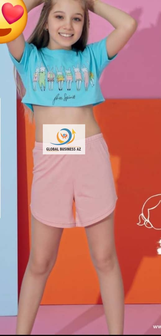 Ensemble pyjama 2 pièces en coton pour enfant, manches courtes, short, vêtements de détente décontractés pour fille