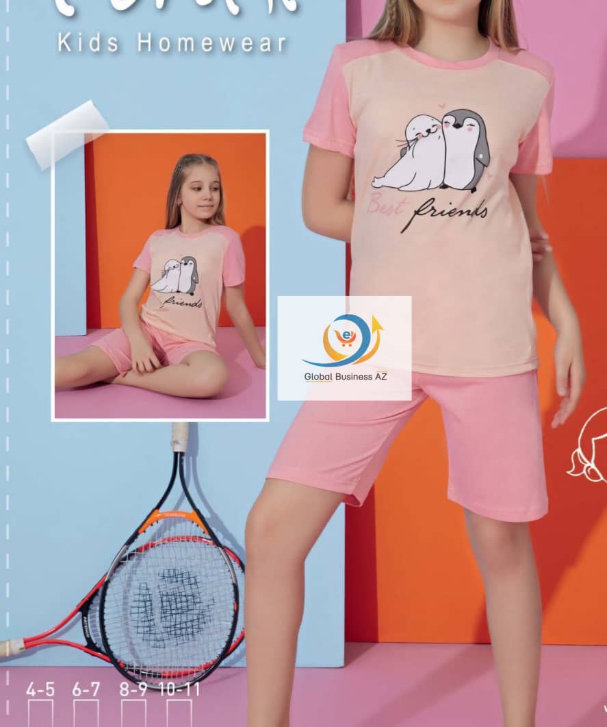 • T-shirts col rond • Manches courtes • 1 T-shirt avec motif pingouin imprimée devant + Short unis à taille élastiquée