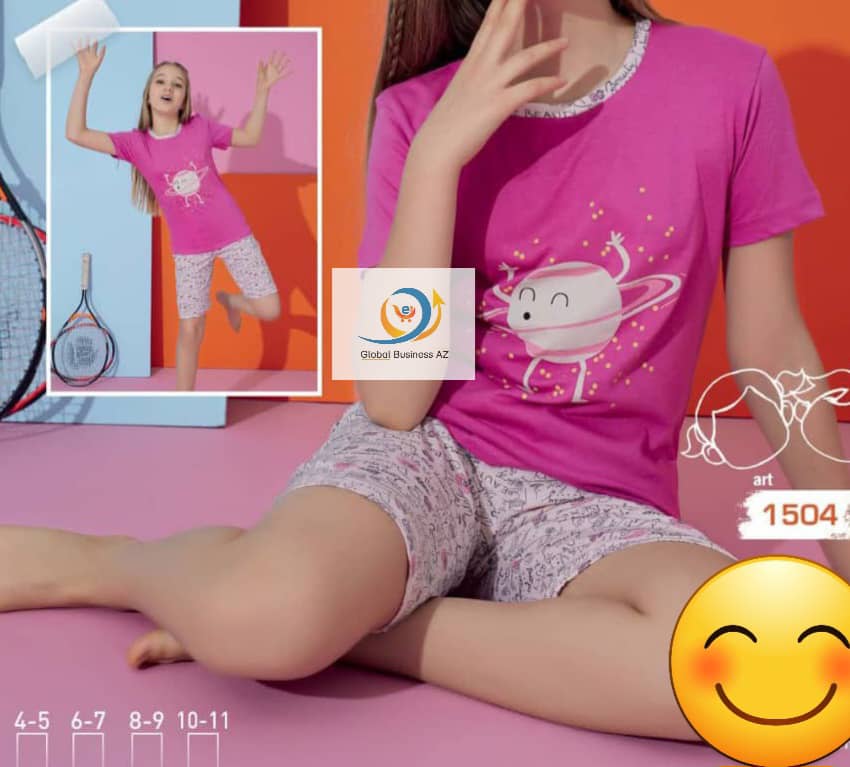 • T-shirts col rond • Manches longues • 1 T-shirt avec motif dessin imprimée devant + Shorts unis à taille élastiquée