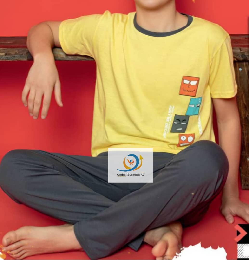 • T-shirts col rond • Manches courtes • 1 T-shirt avec motif carre imprimée devant + Pantalons unis à taille élastiquée