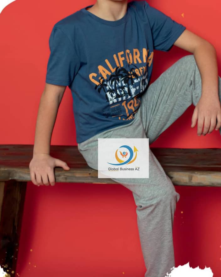 • T-shirts col rond • Manches courtes • 1 T-shirt avec motif California imprimée devant + Pantalons unis à taille élastiquée