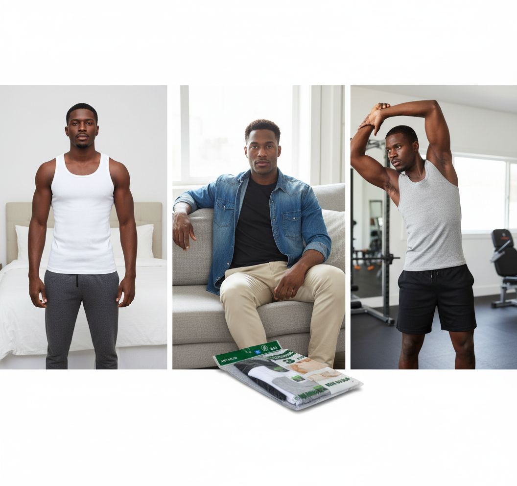 Chaque ensemble sous-vêtements homme confort comprend trois débardeurs sans manches aux couleurs sobres et élégantes : noir intemporel, blanc éclatant et gris chiné moderne. Ce choix de teintes polyvalentes s’adapte facilement à toutes vos tenues, que ce soit pour le travail, le sport ou la détente à la maison. Grâce à leur coupe col rond et leur tissu 100% coton respirant, ces débardeurs homme lot 3 sont parfaitement adaptés à toutes les saisons. Le coton de haute qualité sélectionné pour ce sous-vêtement homme coton offre une sensation de douceur exceptionnelle sur la peau, assure une excellente absorption de la transpiration et limite les irritations, même après de nombreux lavages.